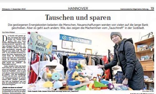 Vielen Dank an die Hannoversche Allgemeine Zeitung / Petra Rückerl für den tollen großen Bericht über den TauschTreff am 8.12.22